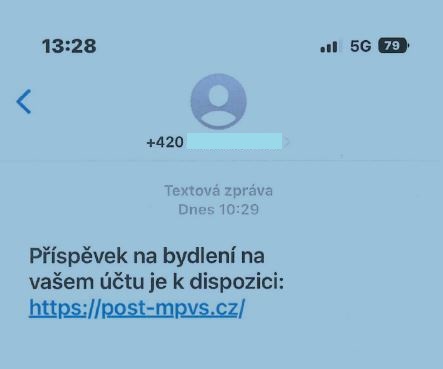 „Příspěvek na bydlení máte k dispozici“ a další podobné znění SMS zpráv spolu s různými odkazy obsahujícími zkratku „mpsv“ nebo „mpvs“ obdrželi lidé, kteří následně v přesvědčení, že se jedná o reálné informace, klikli na obdržený odkaz. Poté po nich bylo na stránkách vypadajících jako stránky Ministerstva práce a sociálních věcí požadováno přihlášení se prostřednictvím bankovní identity. V mobilní aplikaci následně potvrdili požadavky, ale místo přihlášení došlo k odčerpání finančních prostředků z jejich účtů. Poškození tak přišli o úspory v řádech několika desítek tisíc korun.