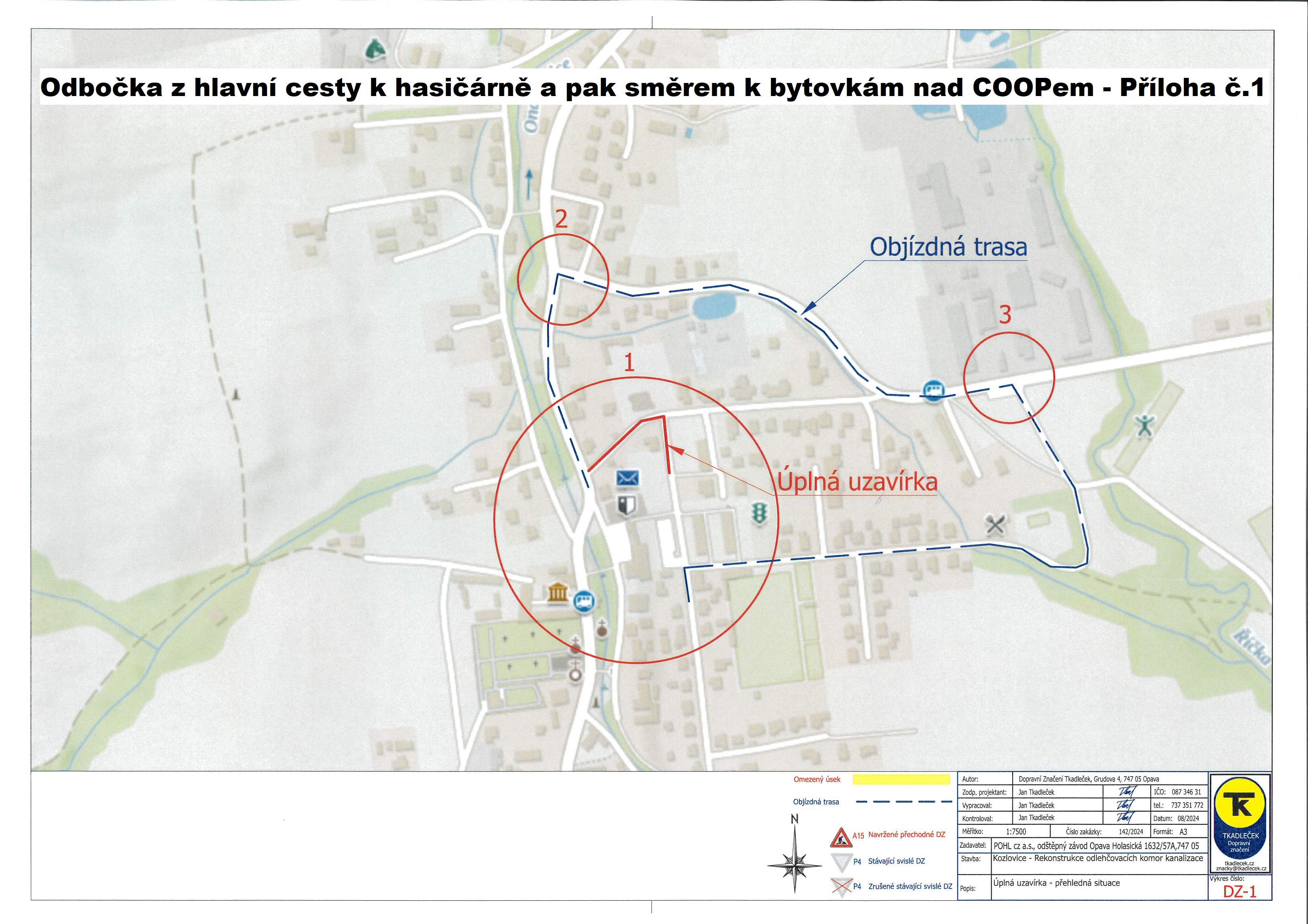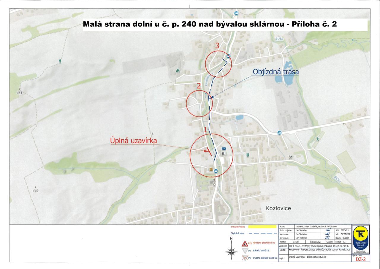 10. 10. – 31. 12. 2024 „Záhumní“ a „Spoj Lhotka“, parc. č. 3937/7, 3943/5, 3953/8 k. ú. Kozlovice (odbočka z hlavní cesty k hasičárně a pak směrem k bytovkám nad COOPem, viz příloha č. 1)