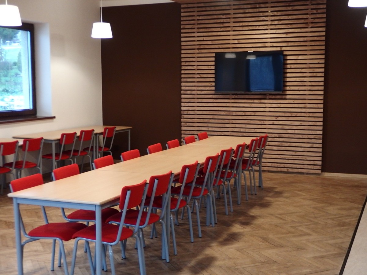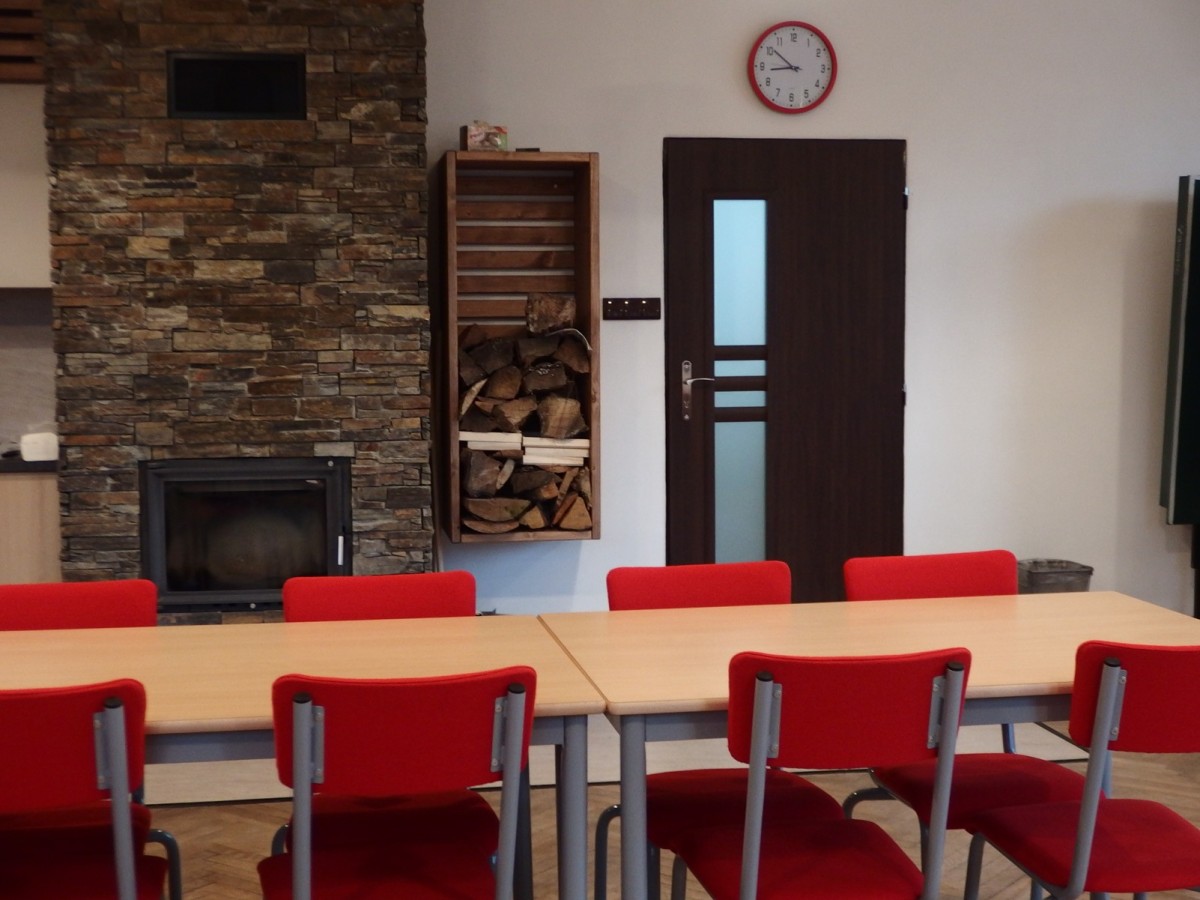 Jsme na FacebookuZ místnosti bývalé třídy je místnost společenská – vybavená TV, kuchyňskou linkou (varná deska, trouba), lednicí, nádobím a potřebným nábytkem pro 35 osob. Vytápění je prostřednictvím teplovzdušného krbu. Součástí objektu je sociální zařízení a dvě velké šatny se sprchami. Naproti budovy je hřiště. Rovněž je zde možné zaparkovat.