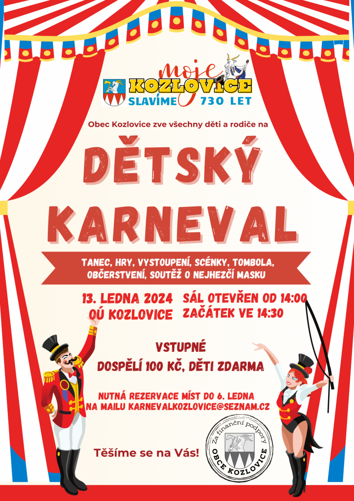 Nutná rezervace míst do 6. ledna 2024 na email karnevalkozlovice@seznam.cz