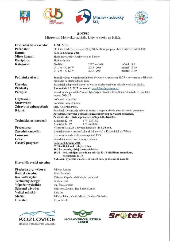 Mistrovství Moravskoslezského kraje ve skoku na lyžích v kategoriích předžáci a žáci.