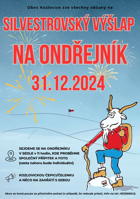 Individuální výstup do sedla, kde se sejdeme v 11.00 hod., rozloučíme se starým rokem a popřejeme si do toho nového. Vezměte sebou "šampíčko" nebo jiný přípitek, kozlovickou čepici nebo čelenku.
