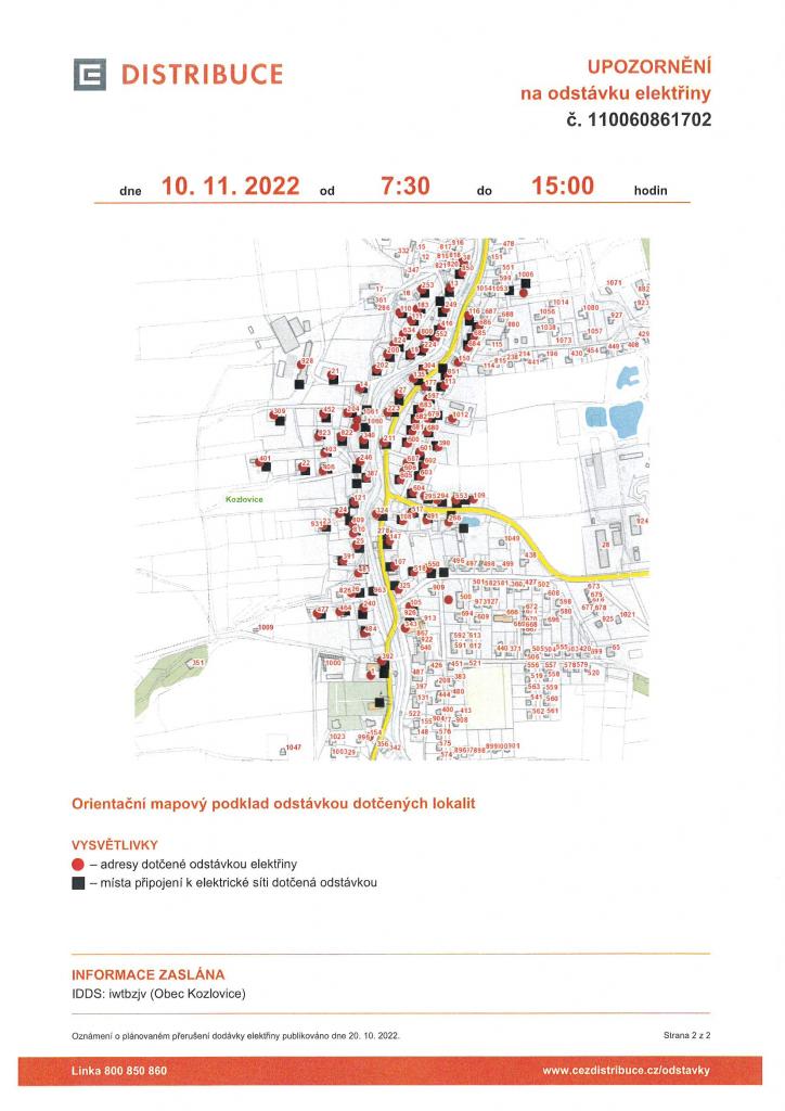 Aktuality - Odstávka elektřiny 10. 11. 2022