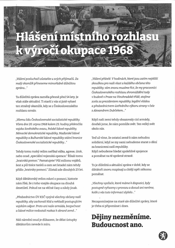 Aktuality - Připomínka vpádu armád Varšavské smlouvy