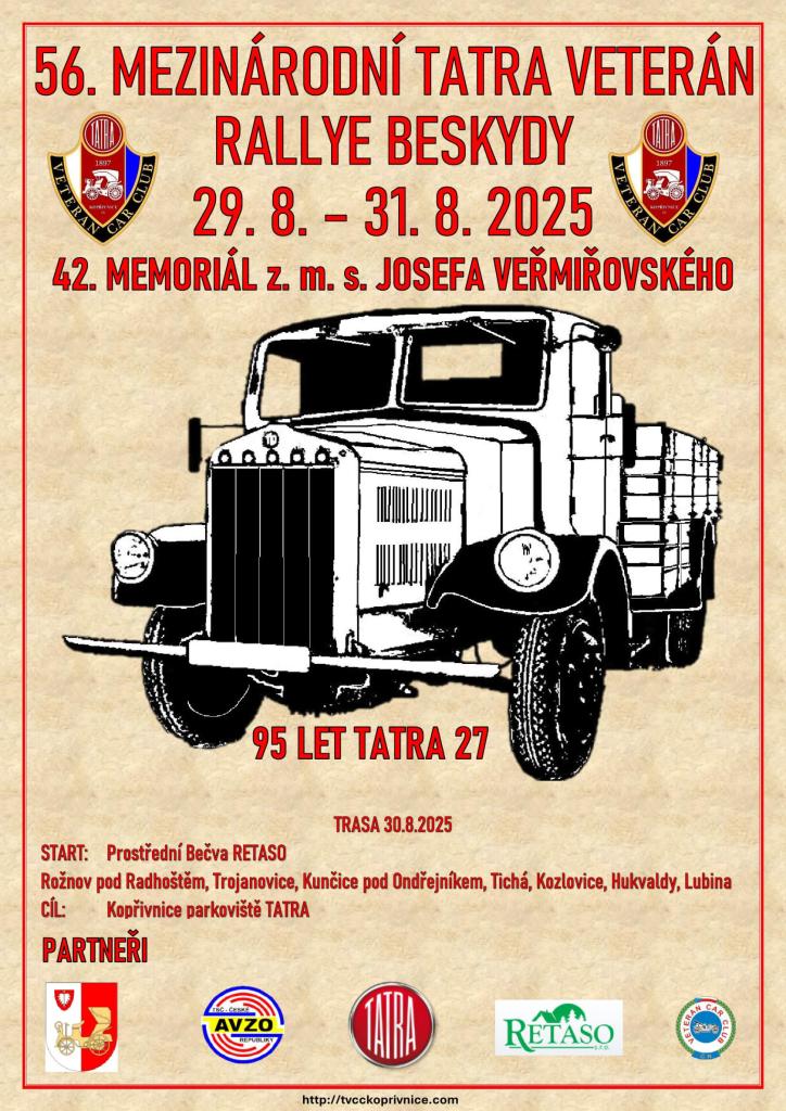 Rallye Beskydy 2025 je určená výhradně vozidlům značky Tatra. Rallye se jede za běžného silničního provozu a na startu, který je téhož dne v 10.00 hodin na Horní Bečvě, se představí i vozidla stará přes 100 let. V současnosti máme přihlášených téměř 120 vozidel značky Tatra. Nejede se na rychlost ani čas, ale o to dojet do cíle.