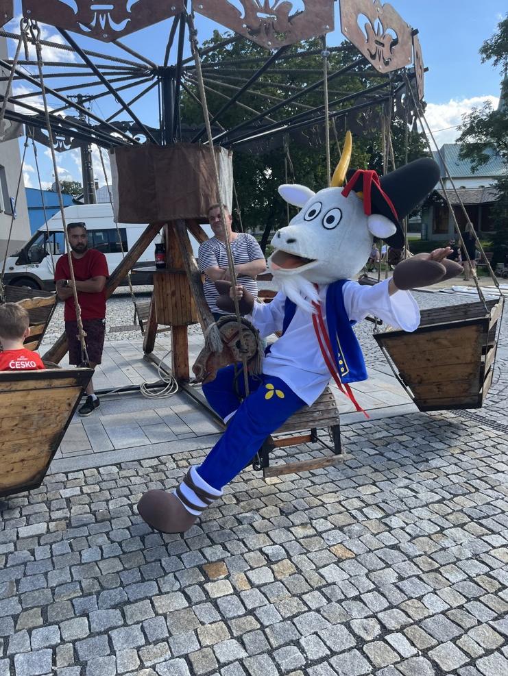 Pro děti byl zdarma připraven dobový dřevěný kolotoč, badminton, omalovánky, kostky a další hry. Pohodovou atmosféru doplnil i flašinetář.
