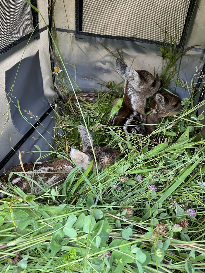 Od května do začátku července, kdy probíhá sečení našich luk, se soustředíme na ochranu srnčích a dančích mláďat před žací technikou. Pomocí dronu s termokamerou lokalizujeme v brzkých ranních hodinách srnčata ve vysoké trávě a včas je přemístíme do bezpečí. Tato metoda, kterou máme letos díky novému dronu, nám umožňuje efektivně zachránit desítky životů a přispět k ochraně naší přírodní rovnováhy. Klíčová je součinnost zemědělců a myslivců, aby se mohla před sečí louka proletět a vynést mláďata mimo sečenou plochu a v Kozlovicích to funguje a jsme za to moc rádi!
